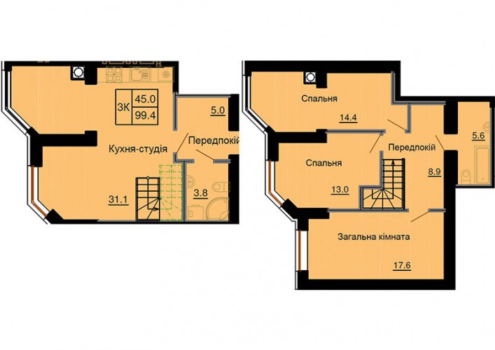 ДВОРІВНЕВА КВАРТИРА 99.40 М/КВ