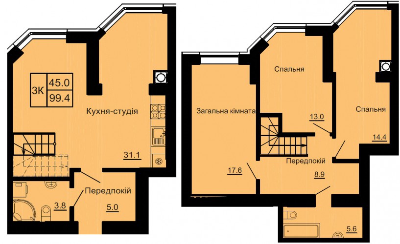 ДВОРІВНЕВА КВАРТИРА 99.40 М/КВ