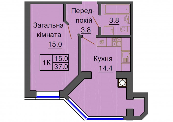 ОДНОКІМНАТНА КВАРТИРА 37.00 М/КВ