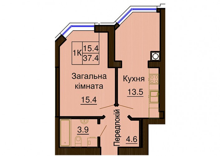 ОДНОКІМНАТНА КВАРТИРА 37.40 М/КВ