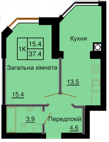 ОДНОКІМНАТНА КВАРТИРА 37.40 М/КВ