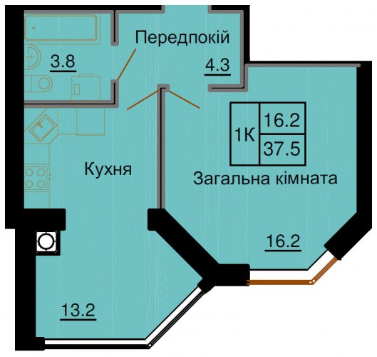 ОДНОКІМНАТНА КВАРТИРА 37.00 М/КВ