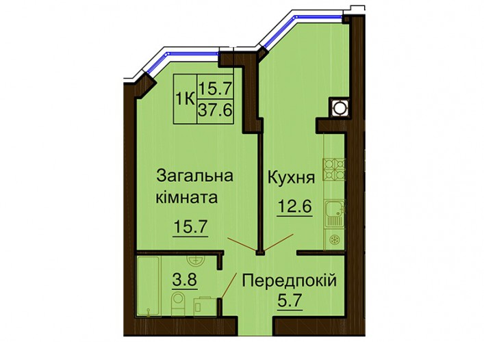 ОДНОКІМНАТНА КВАРТИРА 37.60 М/КВ