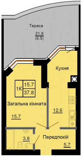 ОДНОКІМНАТНА КВАРТИРА 37.80 М/КВ
