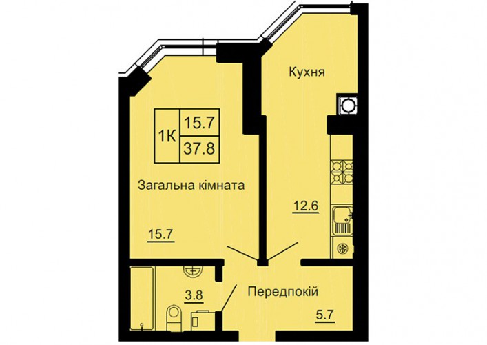 ОДНОКІМНАТНА КВАРТИРА 37.80 М/КВ