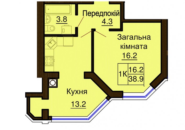 ОДНОКІМНАТНА КВАРТИРА 38.90 М/КВ