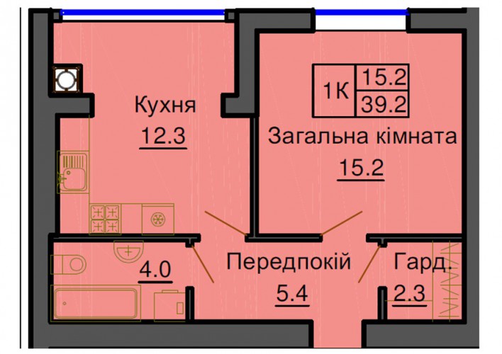 ОДНОКІМНАТНА КВАРТИРА 39.20 М/КВ