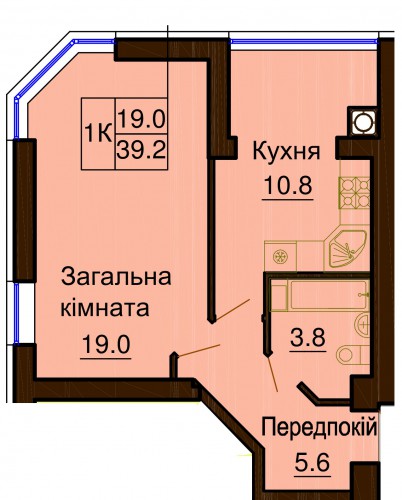 ОДНОКІМНАТНА КВАРТИРА 39.20 М/КВ
