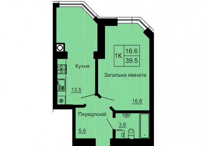ОДНОКІМНАТНА КВАРТИРА 39.50 М/КВ
