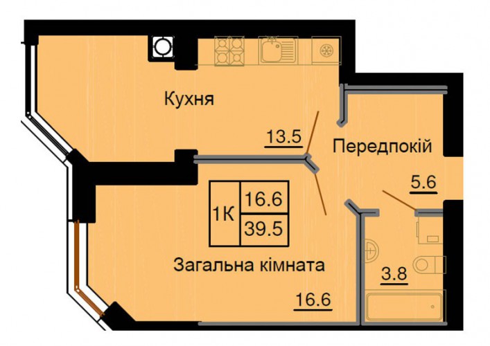 ОДНОКІМНАТНА КВАРТИРА 39.50 М/КВ