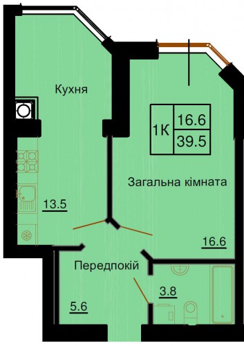 ОДНОКІМНАТНА КВАРТИРА 39.50 М/КВ