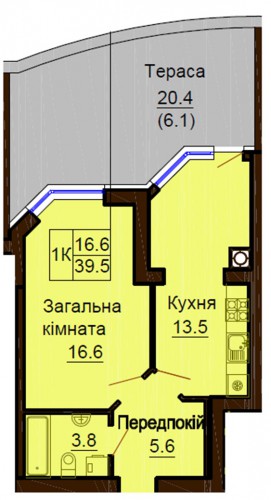 ОДНОКІМНАТНА КВАРТИРА 39.50 М/КВ