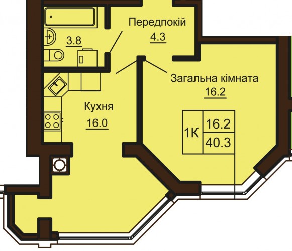 ОДНОКІМНАТНА КВАРТИРА 40.30 М/КВ