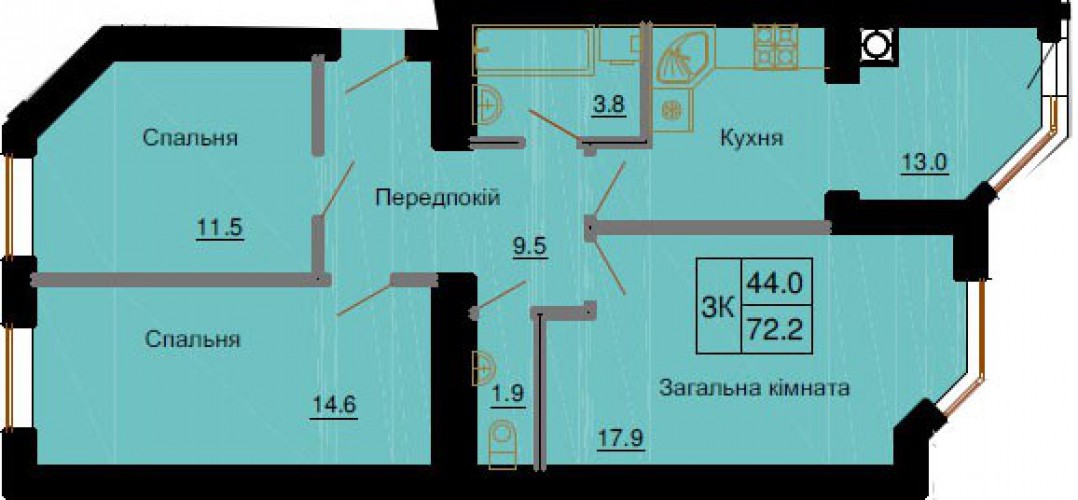 3-Х КІМНАТНА КВАРТИРА 72.20 М/КВ