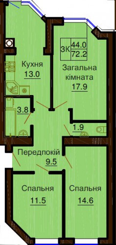 3-Х КІМНАТНА КВАРТИРА 72.20 М/КВ