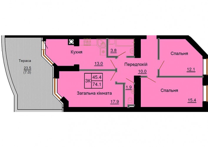 3-Х КІМНАТНА КВАРТИРА 74.10 М/КВ