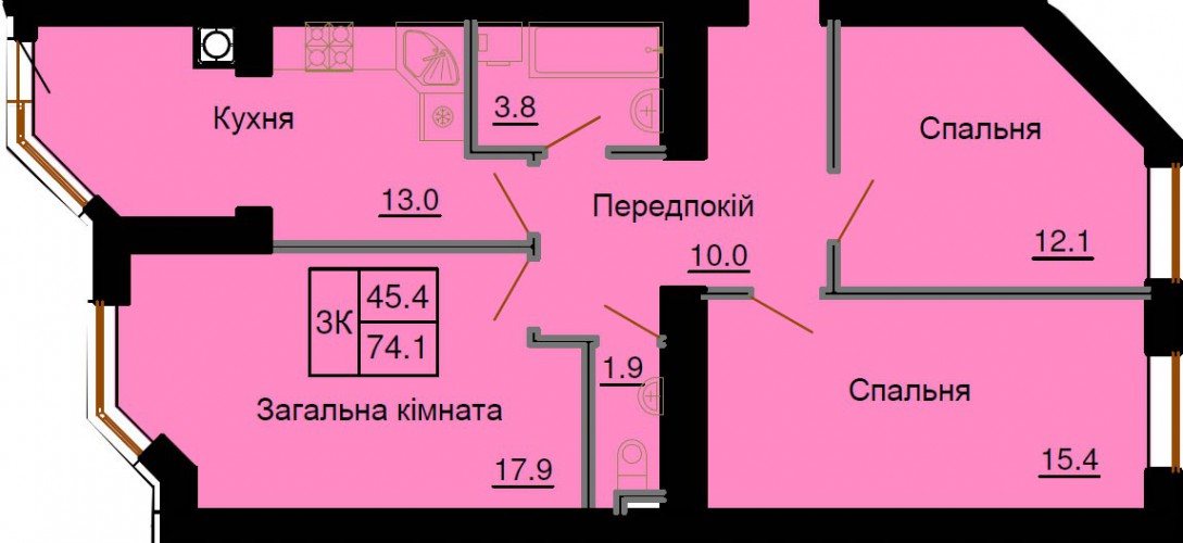3-Х КІМНАТНА КВАРТИРА 74.10 М/КВ