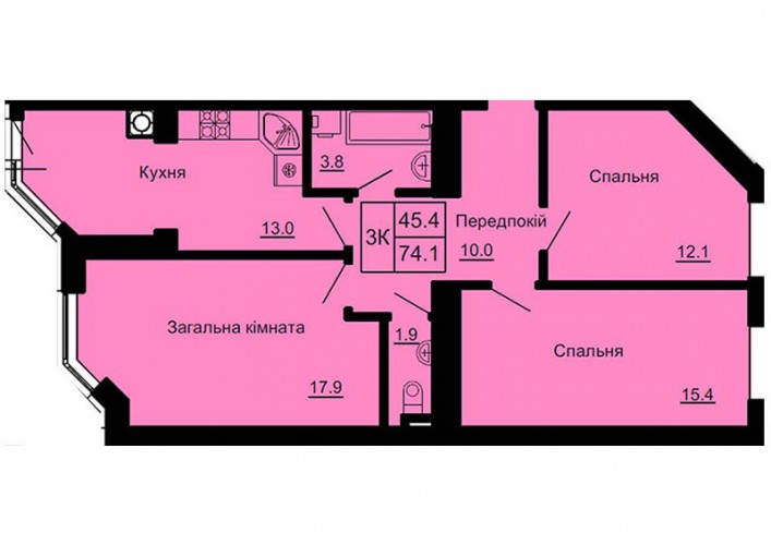 3-Х КІМНАТНА КВАРТИРА 74.10 М/КВ