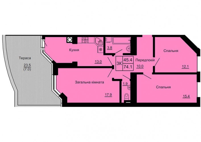 3-Х КІМНАТНА КВАРТИРА 74.10 М/КВ