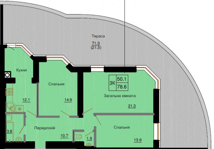 3-Х КІМНАТНА КВАРТИРА 78.60 М/КВ