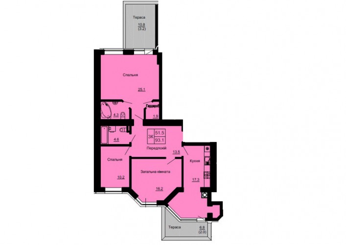 3-Х КІМНАТНА КВАРТИРА 93.10 М/КВ