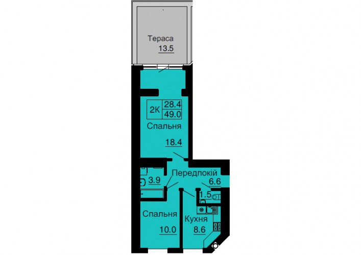 2-Х КІМНАТНА КВАРТИРА 49.00 М/КВ