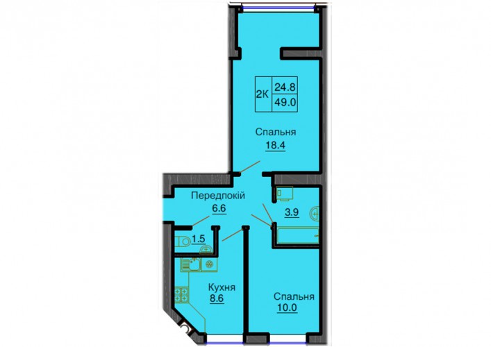 2-Х КІМНАТНА КВАРТИРА 49.00 М/КВ