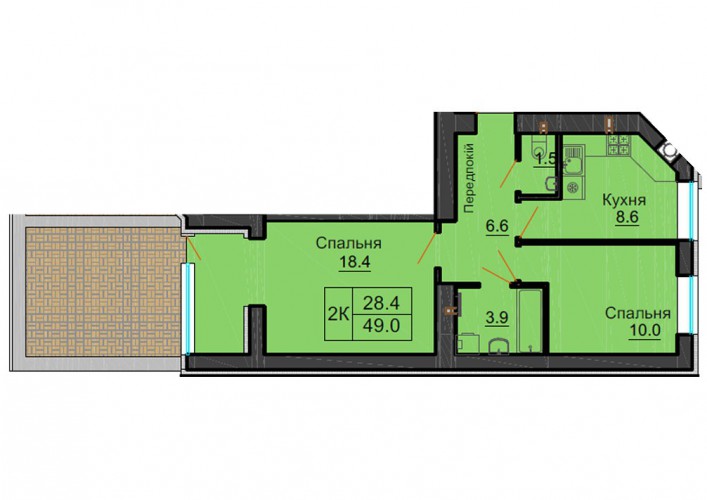 2-Х КІМНАТНА КВАРТИРА 49.00 М/КВ