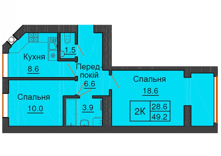 2-Х КІМНАТНА КВАРТИРА 49.20 М/КВ