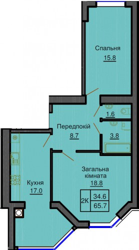 2-Х КІМНАТНА КВАРТИРА 65.70 М/КВ