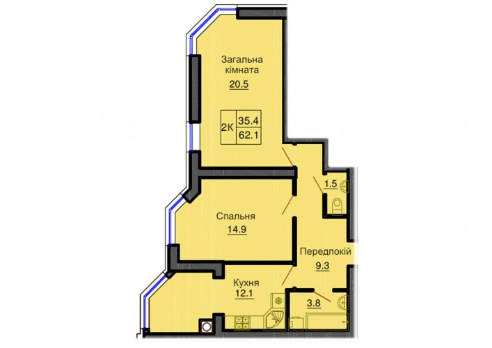 2-Х КІМНАТНА КВАРТИРА 62.10 М/КВ