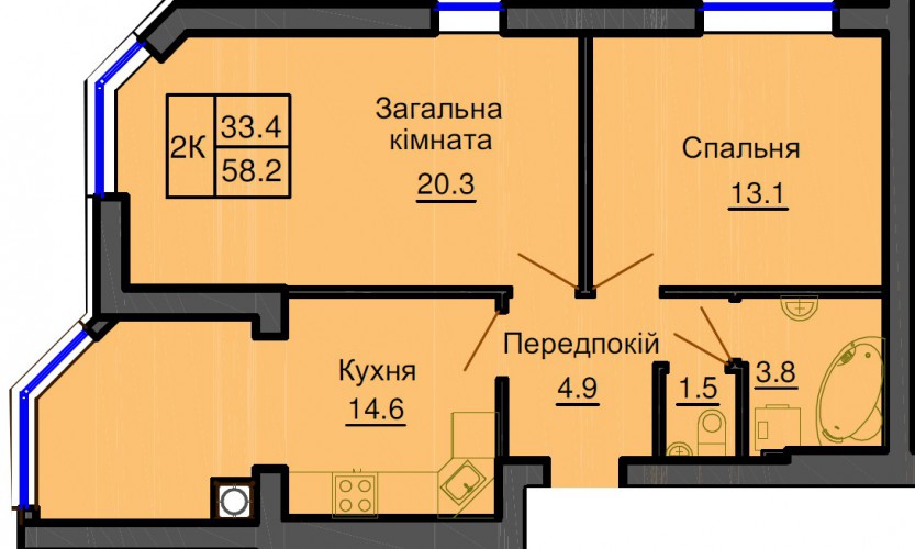 2-Х КІМНАТНА КВАРТИРА 58.20 М/КВ