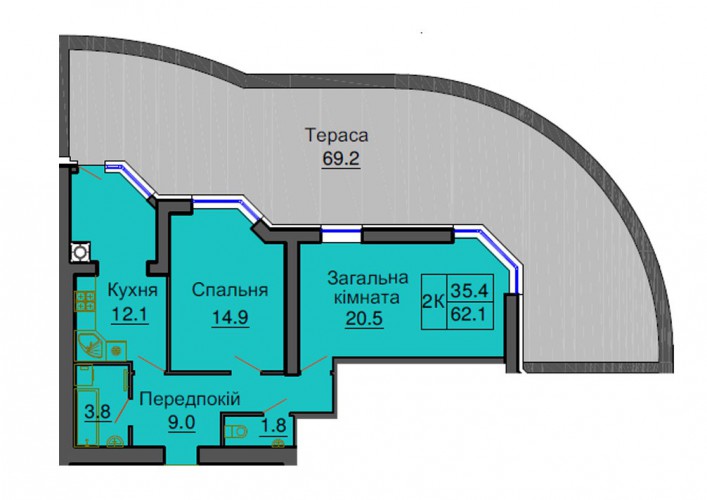 2-Х КІМНАТНА КВАРТИРА 62.10 М/КВ