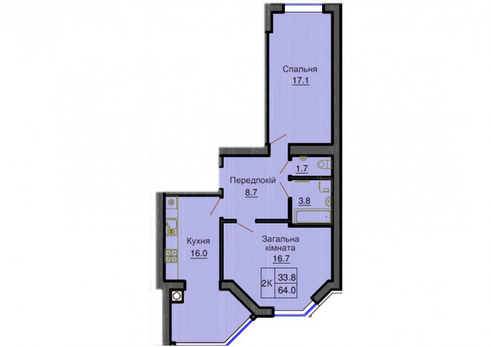 2-Х КІМНАТНА КВАРТИРА 64.00 М/КВ