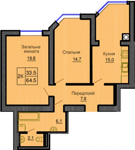 2-Х КІМНАТНА КВАРТИРА 64.50 М/КВ