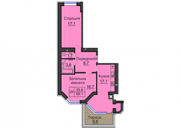 2-Х КІМНАТНА КВАРТИРА 65.10 М/КВ