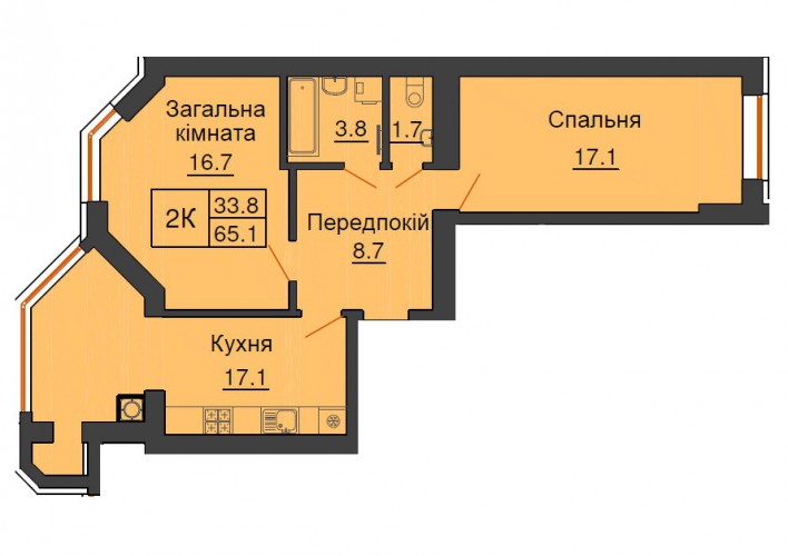 2-Х КІМНАТНА КВАРТИРА 65.10 М/КВ