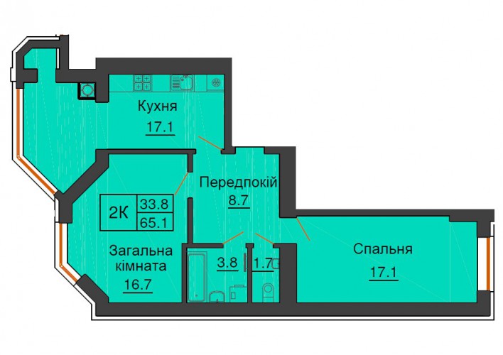 2-Х КІМНАТНА КВАРТИРА 65.10 М/КВ