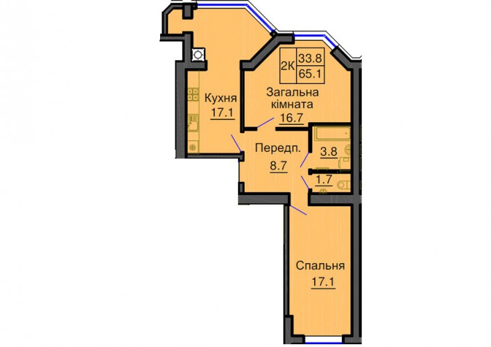 2-Х КІМНАТНА КВАРТИРА 65.10 М/КВ