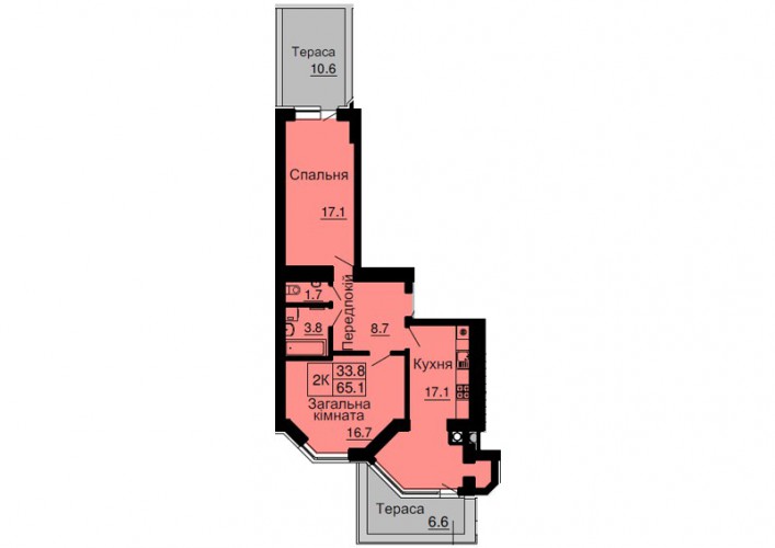 2-Х КІМНАТНА КВАРТИРА 65.10 М/КВ