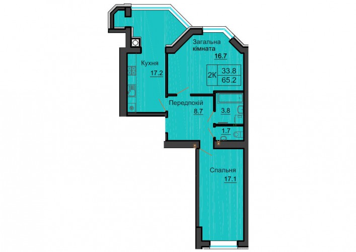 2-Х КІМНАТНА КВАРТИРА 65.20 М/КВ