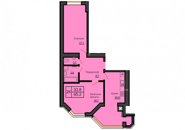 2-Х КІМНАТНА КВАРТИРА 65.20 М/КВ