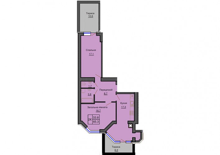 2-Х КІМНАТНА КВАРТИРА 65.30 М/КВ