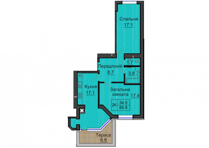 2-Х КІМНАТНА КВАРТИРА 65.80 М/КВ