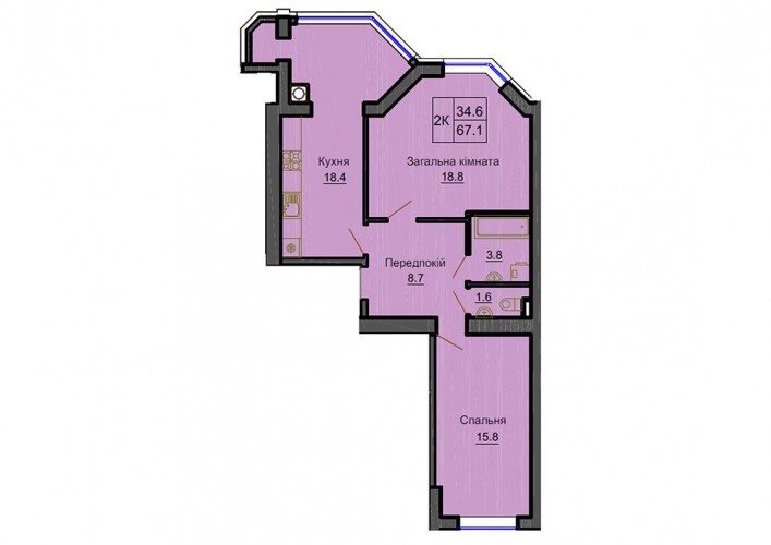 2-Х КІМНАТНА КВАРТИРА 67.10 М/КВ