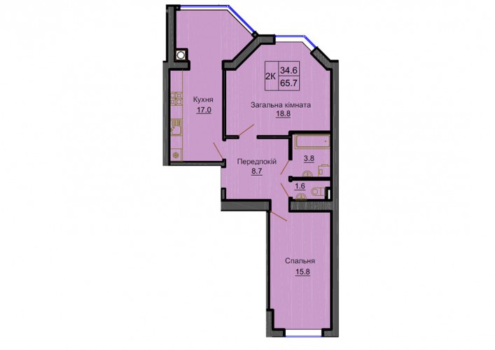 2-Х КІМНАТНА КВАРТИРА 65.70 М/КВ
