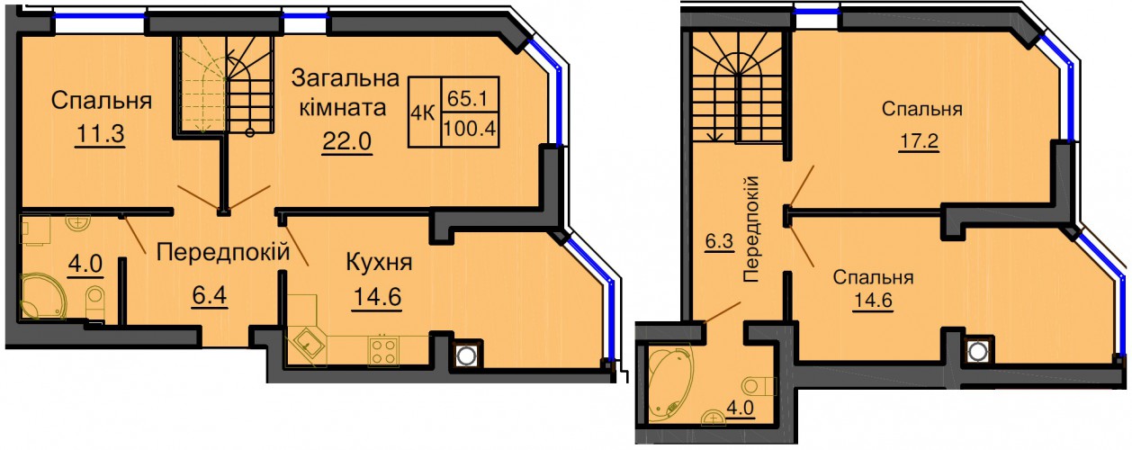 ДВОРІВНЕВА КВАРТИРА 100.40 М/КВ