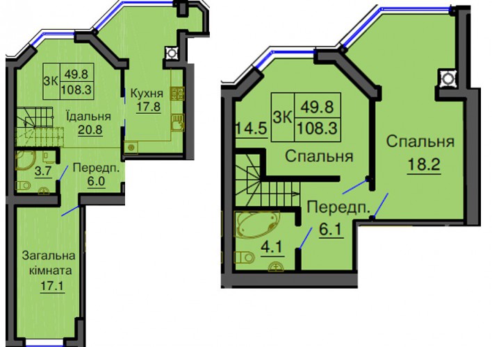 ДВОРІВНЕВА КВАРТИРА 108.30 М/КВ