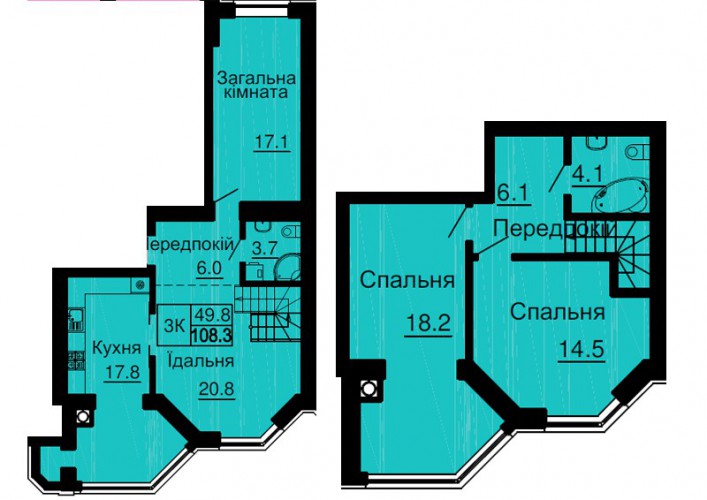 ДВОРІВНЕВА КВАРТИРА 108.30 М/КВ