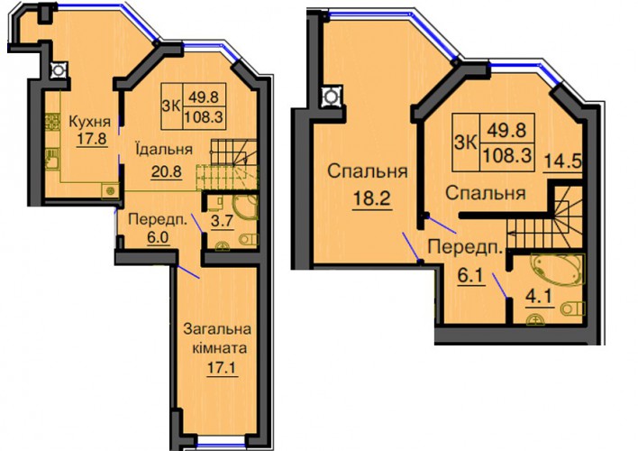 ДВОРІВНЕВА КВАРТИРА 108.30 М/КВ
